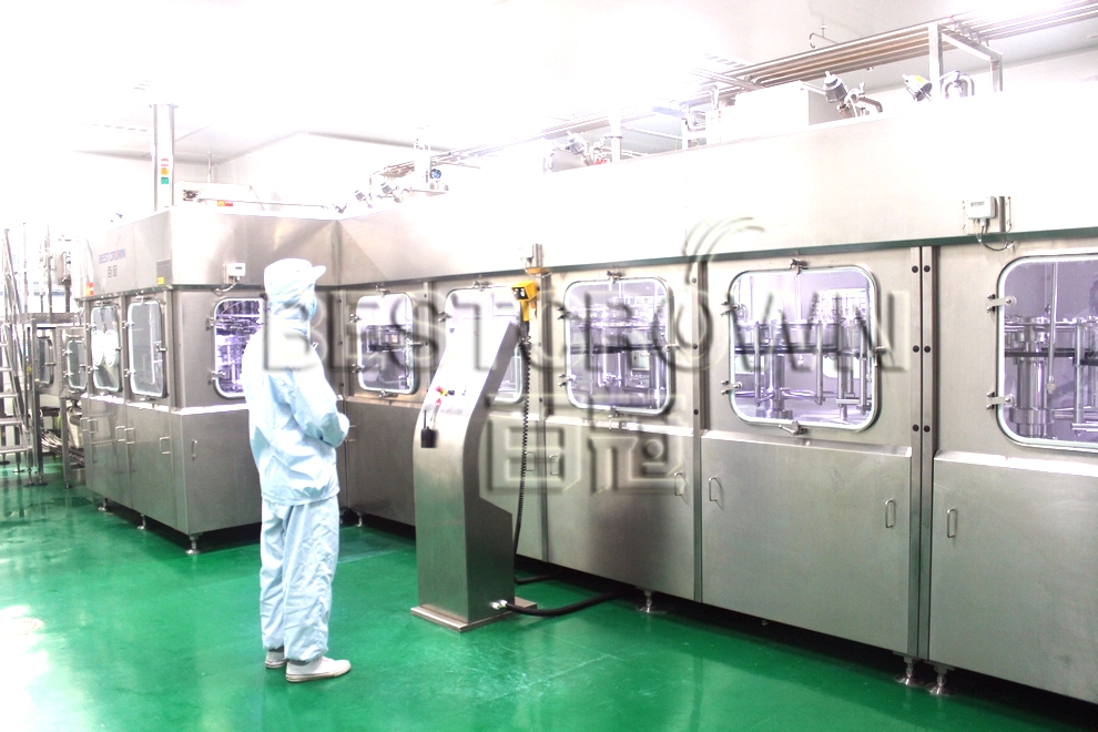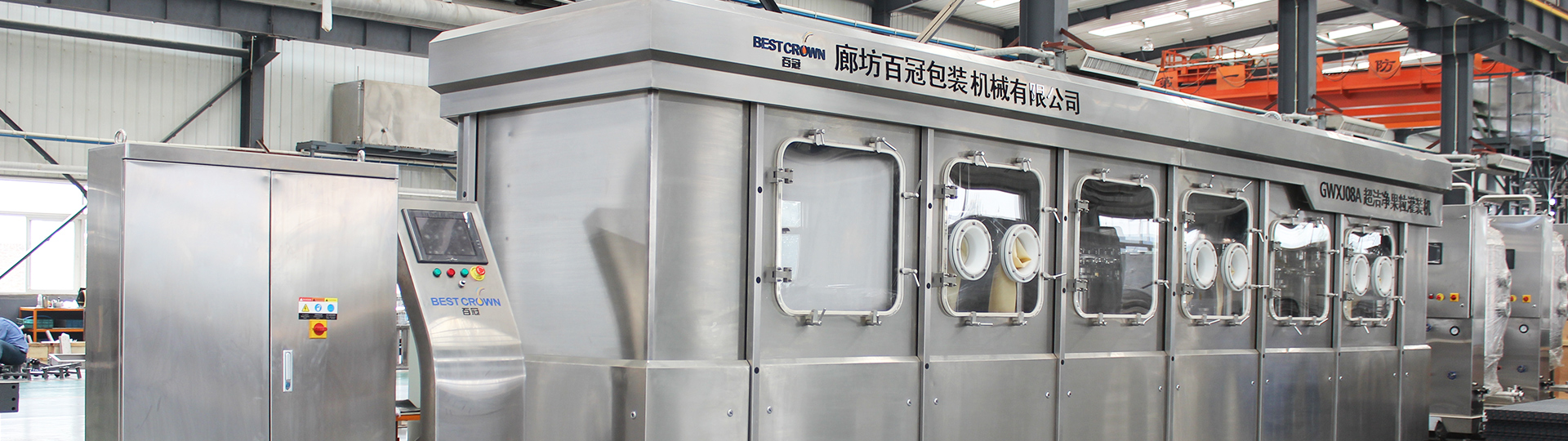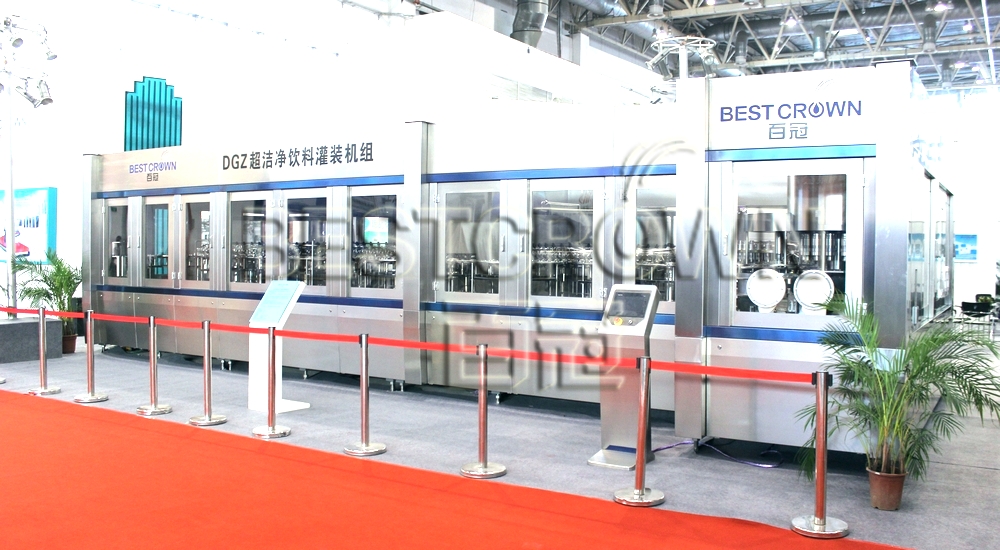 本机是38口颈PET塑料瓶一次性灌装果肉饮料的专用设备,也可进行其它饮料热灌装。灌装阀口采用流线型大流量出流设计,灌装速度快产量高,可灌装含5毫米粒度以下的果肉饮料。灌装缸上设置了搅拌机构,转速可调。果肉饮料动态下混合均匀,灌装精度得到保证。