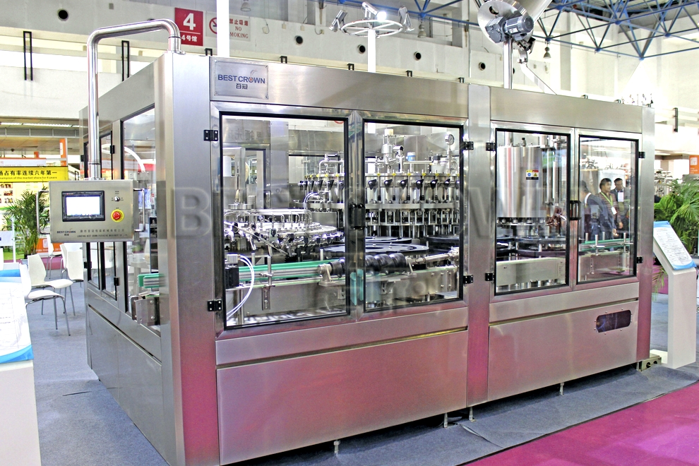 PET瓶含汽冲灌封三合一体机